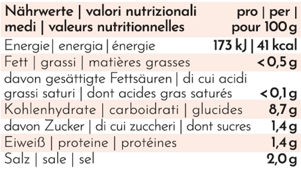 Die Angaben zu den ARCHE-Produkten werden von uns sorgsam gepflegt, jedoch können Fehler nicht ganz ausgeschlossen werden. Wir bitten daher, bei Erhalt des Produktes immer auch nochmals auf dem Produktetikett zu lesen. Sollten Ihnen dabei Abweichungen zu den Angaben auf dieser Seite auffallen, sind wir Ihnen für einen Hinweis an arche@arche-naturkueche.de dankbar.